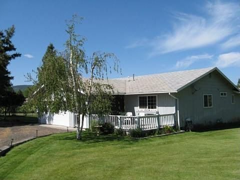This is a rare find close to Klamath Falls! 1,500 SqFt 2 car attached garage 3Bd 2 Bath, pantry, walk in closet, forced air heat with A/C Gas with Elec, front and rear decks. 86 Feet of River Front w/private boat dock sits on the Klamath River. Wake up every morning to the view of the River. This double lot 1 &2/3 acres includes fruit trees, huge garden area and plenty of room for all your toys. Also an additional 24x24 finished shop with wood stove, lots of storage, carport and covered RV parking