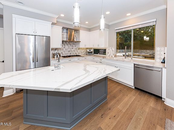 Beautifully remodeled pool home. Nearly 4000 sq ft. with wood flooring throughout entire home. Fireplaces in family, living & primary suite. Soaring ceilings in foyer and living room, Gorgeous remodeled center island kitchen w/veggie sink, stainless steel appliances and large pantry w/views out to the fantastic black bottom saltwater pool and yard. All bathrooms have been tastefully remodeled with a spa like stunning primary suite bath w/separate tub and shower. Along with the dual walk-ins, the primary suite is enormous with sitting areas and fireplace. Main level features an en-suite bed and bath along with family room and wonderful wet bar. 5 bedrooms in all with 3 en-suite and two bedrooms with a shared bath. Other details include tile walls in baths, floor & crown molding, plantation shutters and so much more. The tree lined lot offers privacy and multiple sitting areas alongside of pool, firepit and floating BBQ station w/refrigerator ideal for all the backyard fun. 3 Car garage with ideal location in a great community. Close to schools, shopping and most conveniences!