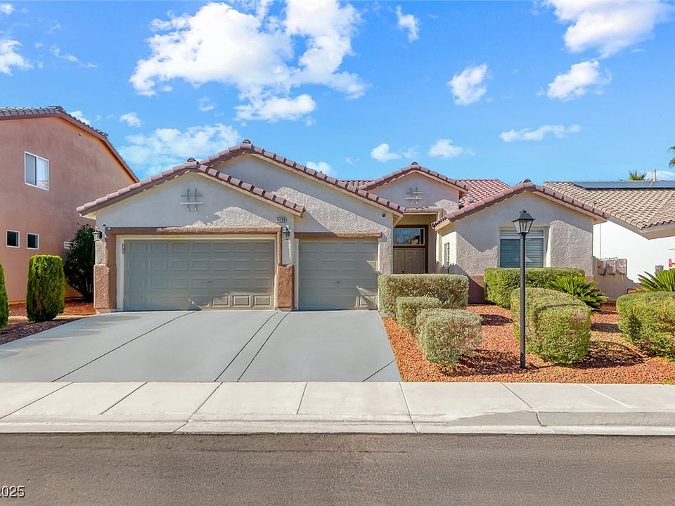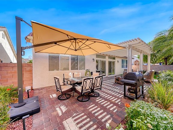 Immaculate single-story home with 3-car garage, energy-efficient owned solar panels, and new A/C units. Located in a private gated enclave within the prestigious Southern Highlands master-planned community, this move-in-ready residence offers a spacious open floor plan with tile flooring in most living areas and soaring high ceilings. The chef’s kitchen features stainless steel appliances, granite countertops, and a large center island. The primary suite is separate from the other bedrooms and includes a walk-in closet and French doors leading to a bright sunroom. A versatile den can easily be converted into a fourth bedroom or game room. The low-maintenance backyard showcases Brazilian pavers, a large covered patio, and artificial turf. Enjoy access to community parks, playgrounds, and scenic walking trails.