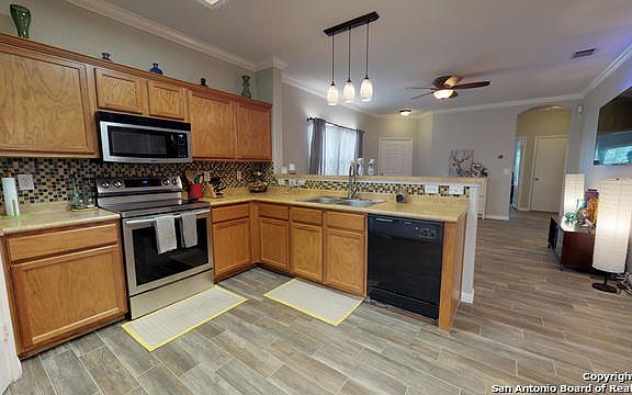 Great home in Helotes on a corner lot with upgrades galore! New porcelain tile throughout in July 2019. Fresh paint in July 2019. Master bath renovated in August 2019. And definitely don't miss the outdoor kitchen, perfect for grilling with friends on your patio. Your open floor plan with large living space means that community is formed inside or out. See Virtual Tour for click-through tour. Convenient to 1604, great shopping, restaurants. Come see for yourself and come home...for the first time.