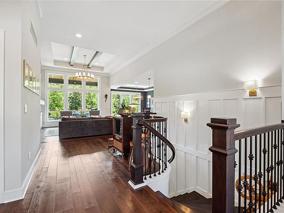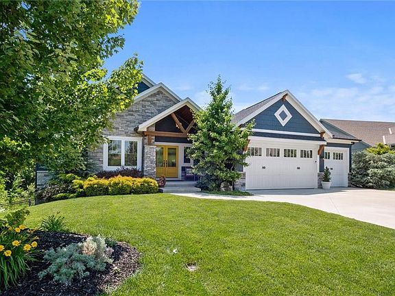 Welcome to this meticulously designed and impeccably maintained Reverse 1.5-story home that blends luxury, comfort, and convenience. Located in the heart of JOCO, this beautiful residence offers easy access to major highways, putting countless amenities just minutes away. From the moment you arrive, you’re welcomed by stunning, mature landscaping that sets the tone for what’s inside. The spacious main level boasts an open floor plan centered around a striking stone fireplace with built-ins and floor-to-ceiling windows that fill the space with natural light. The main-level primary suite includes power blinds, deck access, and a spa-worthy en suite featuring custom mosaic tilework laid-piece-by-piece and a walk-in steam shower and heated whirlpool tub for ultimate relaxation and wellness. The kitchen features a farmhouse sink, mosaic tile backsplash, wine cooler, and a walk-in pantry with a built-in coffee bar/drink station—perfect for mornings or entertaining. Also on the main floor: a secondary bedroom, private office, laundry room/mud room, and access to the oversized garage, equipped with a mini-split for year-round comfort. The walkout lower level offers three additional bedrooms—two sharing a Jack & Jill bath, and one with a private ensuite. A second living area with a full bar makes for an ideal gathering or entertaining space. Don’t miss the HIDDEN, CLIMATE_CONTROLLED ROOM under the suspended garage—perfect as a retreat, home gym, or theater. Additional highlights include: New roof (2024) with 40-year Class 4 shingles (transferable warranty), tankless hot water heater, whole-home water softener and purifier, all major mechanicals replaced in 2017, plantation shutters, and diamond-cut concrete in the driveway and covered patio. Pool Table, Card Table & Couch in secret room, all stay with the sale! Home backs to greenspace. This residence stands out with high-end finishes, thoughtful design, and exceptional functionality— truly one-of-a-kind.
