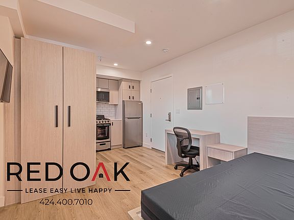 ~2 Months FREE~ Studio with Everything You Need, Featuring A/C, Loads of Storage, Stainless Steel Appliances, Community Pool and Lounge, Internet Access, In-Unit Laundry, and Included Parking ~ In Vibrant West Adams just steps from USC! *MOVE-IN SPECIAL* **Resident will receive a one-time credit of 2 Months FREE off of the Market Rent Price of $1,995, on approved credit. The net effective rent shows the savings over the entire 12-month lease term. The advertised price is based on the NET EFFECTIVE RENT.* Key Features: Inviting Appeal: Featuring top-of-the-line custom furnishings to perfectly suit your space; all ready for you to move in today! Brightly Lit: Floods of natural light pour through large windows, paired with modern fixtures. Enhanced Privacy: Window blinds allow you to control the light and offer additional privacy. Storage Options: Custom built-ins provide extra storage to neatly organize your belongings. Temperature Control: A Mini-Split system keeps your home at the perfect temperature year-round. Stylish Kitchen: Enjoy stainless steel appliances, quartz countertops with a subway tile backsplash, and hardwood cabinets. Lovely Bathroom: A well-lit mirror, hardwood vanity cabinet, and a refreshing walk-in shower await you. Internet Accessible: Internet is included with your rent. In-Unit Laundry: A washer and dryer for your personal use, making daily chores convenient. Included Parking: A parking space for your vehicle is included, subject to availability. Pet-Friendly Policy: Small pets are warmly welcomed with a deposit and monthly pet rent. Outdoor Lounge: Enjoy the fresh air and California sunshine, mingle with neighbors, study, or share a meal. BBQ Area: Cook up something tasty on the provided grill. Pool Access: The sparkling community pool is ready to cool you down and offers a relaxing retreat. Study Areas: Utilize quiet spaces designed for reading or studying. Convenient Location: Your new home is less than 10 miles from DTLA, the Convention Center, Staples Center, and Los Angeles County Museum of Art. It's close to USC and Los Angeles Trade Technical College, plus a variety of restaurants, bars, and shops. Don't miss out on the opportunity! Available for an immediate move-in. LEASE TERMS: 1 Year Lease Pictures and descriptions are of a Model Unit Floor Plan and Details may vary Square Footage is approximate. Showings may not be 1-on-1. Listed pricing and special offers are only valid for new residents. Pricing and availability are subject to change at any time. Red Oak does not warrant or represent that image renderings on this website are an accurate representation of every floor plan available at the Property. Floor plans may vary unit by unit and by location at the Property. Please contact the Leasing Office to schedule a tour of the Property and the particular unit you are interested in. Pricing and availability are subject to change at any time.