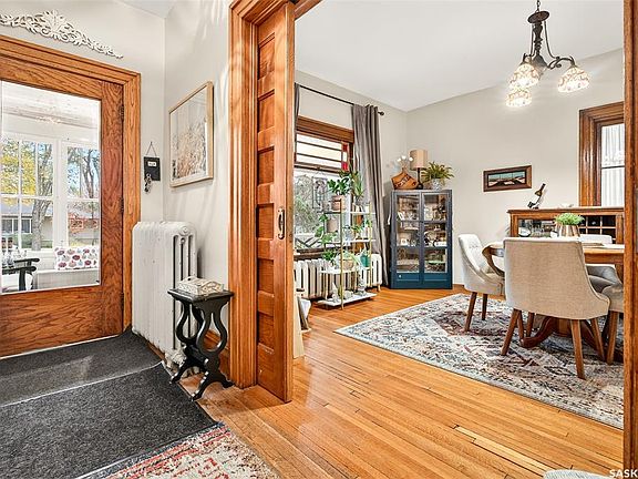 Welcome to this character home located in the highly desirable Avenues area — known for its mature tree-lined streets, timeless architecture, and unbeatable proximity to amenities. The main level features a comfortable living room and a dining room/library, providing flexibility for formal dining or a reading retreat. It would be hard not to notice the stunning wood pocket doors going into the dining room and the living room and the butlers door for easy access between the kitchen and the dining room. Toward the back of the home, you’ll find an updated kitchen complete with quartz countertops, eat-in kitchen island and a beautiful copper sink — a perfect blend of charm and modern functionality. The main floor bathroom has been tastefully updated, showcasing a classic bathtub and a local artisan-made custom shower curtain rod along with a water closet for privacy. A spacious primary bedroom and two additional bedrooms complete the main level, offering comfortable living for families or guests. The second level features two generous bedrooms, a smaller bedroom and a two-piece bathroom, along with an open flex area that could easily serve as a library, office, or children’s play zone. The unfinished basement provides excellent potential for future development and currently includes a dog wash/shower area and a stylishly finished laundry area. Outdoor spaces are equally inviting — enjoy mornings on the east-facing new front deck that was upgraded last year along with Chippendale railing and red cedar siding which gives this home an updated modern appeal & unwind in the south-facing sunroom, or entertain in the fully fenced backyard featuring a deck, green space and ample storage shed (originally built to store motorcycles). This home perfectly blends historic charm with thoughtful updates, offering plenty of room for a growing family in one of the city’s most desirable neighborhoods.