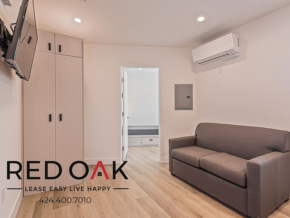 ~2 Months FREE~ Refurbished Studio with Furnishings, Plentiful Storage, Internet, Air Conditioning, Stainless Steel Appliances, Community Pool and Lounge, In-Unit Laundry, and Included Parking ~ In Vibrant West Adams just steps from USC! *MOVE-IN SPECIAL* **Resident will receive a one-time credit of 2 Months FREE off of the Market Rent Price of $2,350, on approved credit. The net effective rent shows the savings over the entire 12-month lease term. The advertised price is based on the NET EFFECTIVE RENT.* Key Features: Fully Furnished: This home is ready for you to move in! Bright & Airy: The abundant windows allow the natural light to stream in, and offer charming views of the local area. Enhanced Privacy: Window blinds allow you to adjust the lighting and provide additional privacy. Storage Options: Custom built-ins offer ample storage to keep your belongings neatly organized. Temperature Control: A Mini-Split system maintains a comfortable temperature throughout the year. Stylish Kitchen: Enjoy stainless steel appliances, quartz countertops, a subway tile backsplash, and sleek hardwood cabinets. Peaceful Retreat: Relax in the spacious bedroom with an ample closet, large windows, and a mini-split for personalized comfort. Lovely Bathroom: A well-lit mirror, hardwood vanity, and a refreshing walk-in shower are ready for your comfort. Internet Accessible: Internet is included with your rent. In-Unit Laundry: A washer and dryer for your convenience, making daily chores easy. Included Parking: A parking space for your vehicle is available, subject to availability. Pet-Friendly Policy: Small pets are welcome with a deposit and monthly pet rent. Outdoor Lounge: Soak in the fresh air and California sunshine, mingle with neighbors, study, or enjoy a meal. BBQ Area: Grill up something delicious on the provided BBQ. Pool Access: The sparkling community pool is perfect for cooling down and unwinding. Study Areas: Take advantage of quiet areas designed for studying or reading. Convenient Location: Your new home is less than 10 miles from DTLA, the Convention Center, Staples Center, and Los Angeles County Museum of Art. Close to USC, Los Angeles Trade Technical College, and a wide range of restaurants, bars, and shops. Don't miss out on the opportunity! Available for an immediate move-in. LEASE TERMS: 1 Year Lease Pictures and descriptions are of EXACT unit Square Footage is approximate. Showings may not be 1-on-1. All information must be validated on Red Oaks Website since 3rd party websites can feed incorrect information.