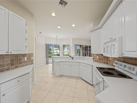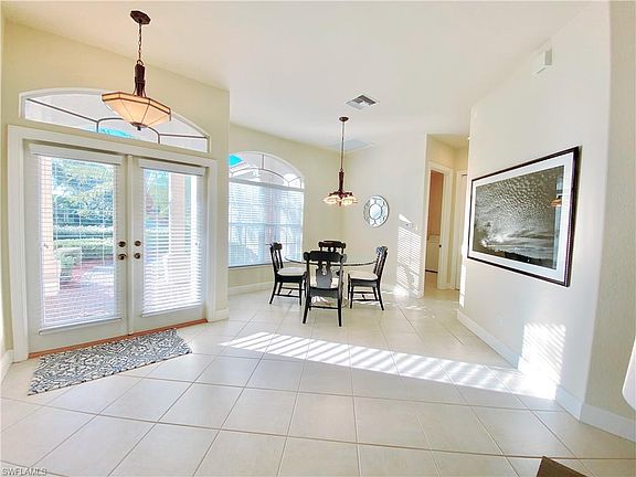 Relax poolside and enjoy serene lake views from the lanai of this pristine 3BR + DEN / 2BA home in the rarely available neighborhood of Augusta Falls in the heart of the Vineyards. Arched windows and tile on the diagonal lend a light, bright feeling to the living area. Breakfast area of kitchen overlooks private pool, walk-in closets in all 3 bedrooms, and a community pool just steps away. Just minutes to shops, grocery stores, restaurants, and Physicians Regional Hospital is yet another plus. Vineyards is a private golf course community with two 18 hole championship courses, resort-style pool with bar, tennis courts, pickleball courts, and a new state-of-the-art fitness/wellness facility with several membership plans to choose from. Membership is optional.
