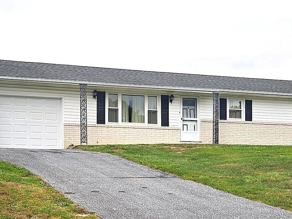 Charming 3BR 1bath ranch home nestled on .48ac corner lot overlooking peaceful farmland. This property offers the perfect blend of comfort and country charm. Step inside to a cozy living room and spacious eat-in country kitchen ideal for gatherings and home-cooked meals. One step from the dining area leads to the family room with plenty of space to relax or entertain and access the level rear yard. All three bedrooms offer great natural light and flexibility. The finished lower level features a carpeted rec room complete with a dry bar perfect for game nights or casual entertaining. The utility/laundry room has loads of storage space, washer and dryer with laundry tub and access to the rear yard. Updates over the years include new windows in 2016 and water heater June 2025. Stay comfortable year round with central A/C, electric baseboard heat, and 3 Ceiling Fans. Outside the property offers ample parking and storage in the oversized 1-car garage and storage shed, plus plenty of yard space to enjoy. Don't miss your chance to own this charming home with unbeatable location and room to grow.....Schedule your showing today!