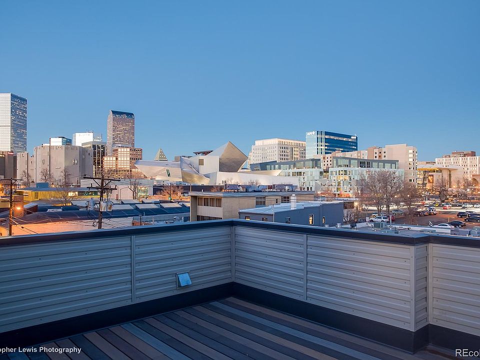 Stunning Golden Triangle/Museum District Townhome with 4th-floor rooftop deck has unbelievable mountain and city views!! This south-facing townhome boasts custom cabinetry, designer fixtures throughout, open layout, hardwood floors, gourmet kitchen with large island, and high ceilings. Amazing heated 2 car attached garage, with workbench and extra room for storage. The first level includes a guest bedroom with en-suite bath and walk-in closet. Upstairs opens into the spectacular kitchen with leathered granite countertops, tons of cabinet space, pantry, under-cabinet lighting, and stainless appliances, as well as access to a private east-facing balcony. The kitchen leads into the dining and living area, with a powder room for guests. Heading to the third level is the spacious primary retreat, with walk-in closet, and stunning en-suite primary bath with double vanities. Across the hall is the laundry room, as well as an additional guest bedroom, another walk-in closet, and en-suite bathroom. The fourth level rooftop deck with gazebo is ideal for relaxing or entertaining. There is a SimplySafe security system, and MyQ remote garage door sensing/monitoring/phone control to implement Amazon Key. Surrounded by culture and very walkable this townhome is located in the heart of Golden Triangle, and an easy walk to downtown and the 16th Street Mall. It is also surrounded by restaurants, nightlife, art studios, Galvanize and art studios. This is urban living at its best!