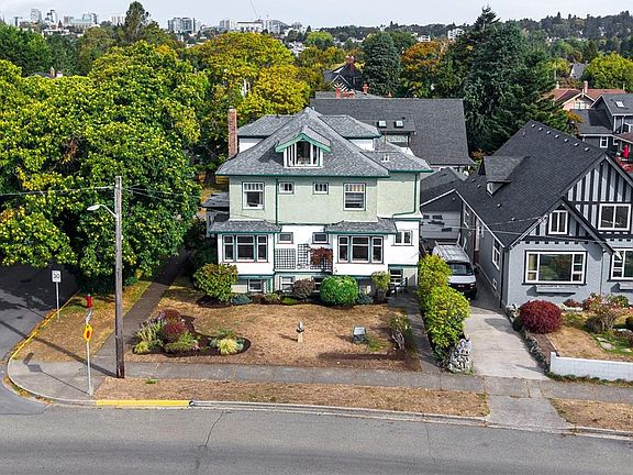 OPEN HOUSE SAT 1-2PM. INVESTMENT OPPORTUNITY, LEGAL REVENUE 6-PLEX! This is a rare opportunity to own an ocean view revenue property in Fairfield, on an ideal corner lot in one of Victoria’s most desirable neighbourhoods! This legally operating 6-unit character conversion stands along Dallas Rd waterfront, offering sweeping ocean views. Step outside to the shoreline pathway, BeaconHill Park or Cook St Village. Nearly 5,000sqft of bright living across 4 levels, the property sits on 5459sqft lot w/detached garage & workshop. The unit mix incl. 5 1bed/1bath suites (451–569sqft)+a 2bed/2bath residence offering 1,487sqft. This unit offers unobstructed views of ocean & mountains, a fireplace & connected in-law suite below, ideal for extended family or flexible tenancy. Prime orientation & proven demand make this a high-performing asset w/ long-term redevelopment potential in DPA 15F-MissingMiddle. With a BCAssessment of $2,513,000, you won't want to miss this one!