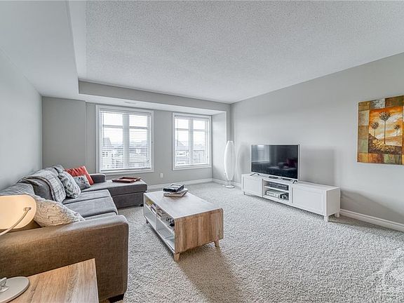Bright and spacious 1,428 sq f. upper level Minto condo in popular Morris Village. Two large bedrooms with each a private ensuite bathroom. Open concept kitchen with sunny breakfast nook. Patio door leads to balcony. Spacious living and dining room. Laundry and storage room on second level. Carpet and ceramic tile throughout. Blinds in all windows for privacy. Central A/C + 5 appliances Rated "Energy Star". 1 Parking spot included. Steps away from parks, schools, shopping, and easy to commute to Ottawa.
