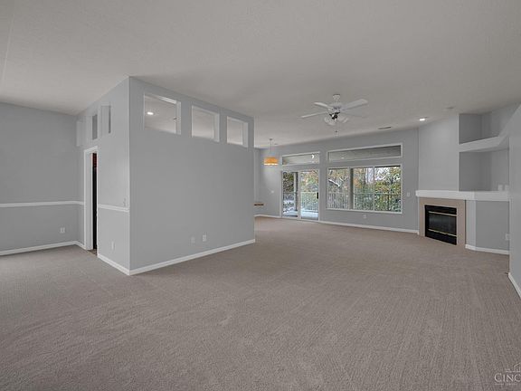 Gorgeous, bright, light-filled 3 bed, 2 bath end unit with nearly 2000 sq. ft of luxurious one-level living in this upper level retreat. One of the very few units in Bridgehaven with a 2-car garage and large square footage! Step inside to spectacular cathedral ceilings and an open floor plan that flows seamlessly from the large great room, complete with cozy fireplace to the upgraded kitchen with granite, stainless appliances, pantry, double oven, and counter bar for meals. Dining room and flex spaces are adjacent to kitchen. Perfectly prepared for you with fresh paint throughout, all new top quality neutral carpet and pad and new LVP flooring in kitchen and baths! Relax or entertain on the covered oversized deck where you can enjoy nature gazing at the woods and peaceful green space. The spacious master suite boasts a walk-in closet, bath with separate shower and soaking tub, and double sink. Enjoy the conveniences of a private entry, front garage and quick walk to pool and clubhouse