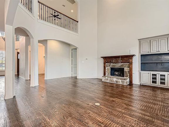Custom built gorgeous 2-story home has incredible drive up appeal with a beautiful elevation in Lantana. A winding staircase welcomes you. 6 large bedrooms, 4 full baths, a formal dining area, executive study with French doors, upstairs game and media rooms, and 3-car swing garage! Pristine interiors, beautiful upgrades. Soaring ceiling family room has stone fireplace. Emarkable hand-scraped hardwood floor throughout the main level. Entire house has plantation shutters. Gourmet kitchen boasts large center island with breakfast bar & pendant lighting, gas cooktop, granite countertops & abundance of cabinetry. Luxurious master with sitting area, garden tub & seperate shower. Downstairs guest bedroom has full bath. 4 beds up with 2 full baths including Jack & Jills. Large game & media rooms upstairs. Private backyard is complete with a covered patio & outdoor kitchen & grill. One block from community center & pool. Brand new roof & gutter 2024. New stain on back patio and fence 2024.