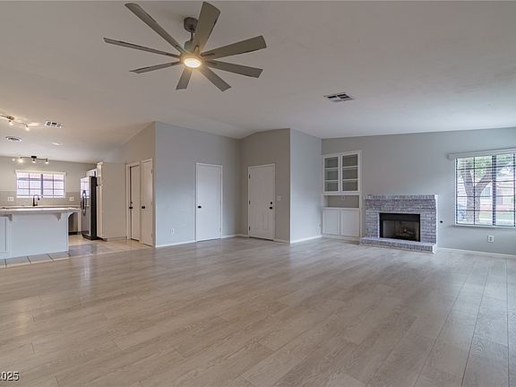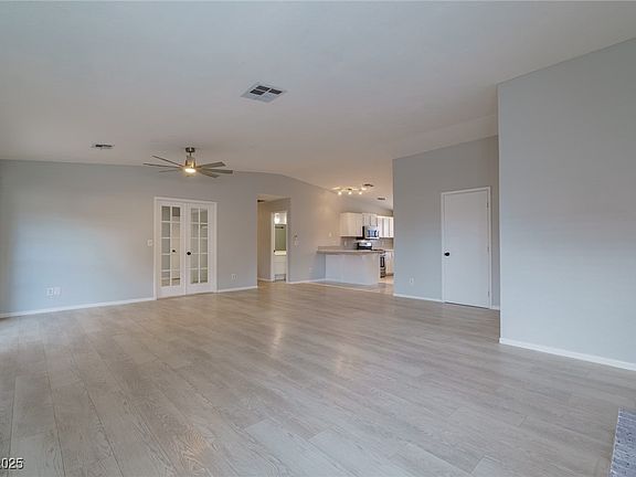Welcome to this beautifully updated single-story home in the desirable Del Prado community of Boulder City. With 3 bedrooms and an open-concept layout, this inviting property is filled with natural light and modern touches. New laminate hardwood floors, fresh paint, refinished ceilings (no popcorn), updated countertops, reverse osmosis system & more. The spacious living areas are perfect for entertaining, while the primary suite offers comfort with two closets. Two secondary bedrooms add versatility: one with elegant French doors, perfect for an office or guest room & the other with sliding door access to the backyard for indoor/outdoor living. Step outside to a private backyard retreat with two insulated patio covers and easy-care landscaping, ideal for relaxation or gatherings. With RV parking, there is space for all your toys too. Located near schools, Boulder City Hospital, Del Prado Park, and the exciting new pickleball courts, this home blends comfort, community, and convenience.