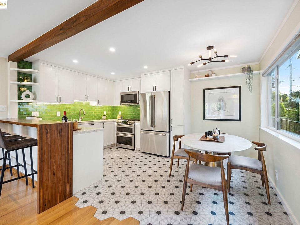 Welcome home to 1124 Hollywood Avenue, an artful and thoughtfully designed condo in Upper Glenview, bordering Piedmont! This modern, Dwell-inspired spacious two bed, two bath condo is surrounded by stunning hillside vistas in one of the best neighborhoods that Oakland has to offer. One of only four units in the building, this unit has its own private entrance, spacious private garage, in-unit laundry, and extra storage. The entire condo was recently renovated from top to bottom by a first-class artisan, making it a unique and beautifully crafted home! The kitchen features custom designed cabinets, solid Walnut bar top, playful ceramic tile backsplash, new stainless steel appliances and hexagonal floor tiles. Both bathrooms have been renovated with designer tile, new light fixtures, and custom designed vanities. All of the windows have been replaced with dual pane Marvin windows. The subpanel and wiring have been upgraded, and a new mini-split system provides heating and cooling throughout the unit. Easy access to casual carpool, the Transbay bus offering a direct line to downtown SF/Salesforce, Highway 13 & the 580. Effortless walk down to Park Blvd for fine dining, coffee, and shopping.Enjoy plenty of hiking and cycling trails through Sausal Creek and Joaquin Miller Park.