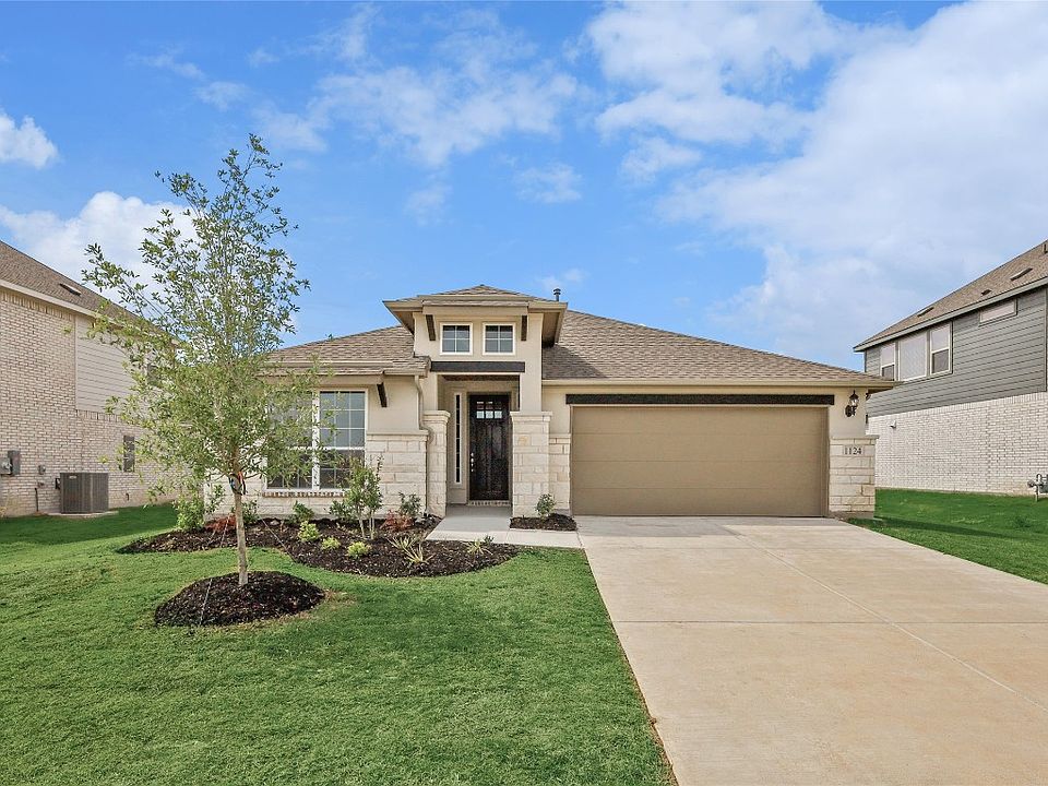 Beautiful New Construction Single-Story Brightland Home! The Oleander Floor Plan features 2,211 sq ft of living space with 4 bedrooms, 3 bathrooms, study and a beautiful covered patio. This versatile plan is perfect whether you work from home or love to entertain (or both!). This house boasts a contemporary open concept layout with the kitchen flowing into the dining space, wet bar, and family room. The kitchen includes upgraded custom cabinets, Omegastone countertops, all stainless steel appliances with gas cooking, and a walk-in pantry. The Owner's Suite is tucked away in the rear of the home with backyard views and large bath and walk-in closet. Anna Ranch will feature a community pool and is located in Anna ISD, more specifically across the street from Judith L Harlow Elementary School. Schedule your appointment today!