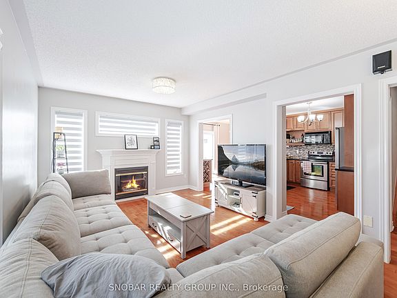 Beautifully maintained 3-bedroom, 4-bathroom detached home on a quiet street in desirable Meadowvale Village. This home offers a spacious 6-car driveway plus a double garage, and features generous principal rooms throughout. The open-concept living and dining area showcases hardwood floors and a cozy gas fireplace. The kitchen is designed with granite counters, a tile backsplash, double undermount sink, quality appliances, and a breakfast bar peninsula overlooking the breakfast area with built-in cabinetry and wine rack. The primary bedroom includes double door entry, hardwood floors, a walk-in closet, and a 4-piece ensuite with a corner soaker tub and separate shower. Two additional bedrooms feature hardwood flooring, large closets, and bright picture windows. The finished above-grade basement offers a separate entrance, kitchen, 3-piece bath, wet bar, laminate floors, and large windows ideal for extra income or in-law suite. The fully fenced backyard is complete with a separate basement entrance, patio, deck, and shed. Conveniently located near top-rated schools, parks, public transit, restaurants, shopping, Meadowvale Conservation Area, and with quick access to major highways for easy commuting.