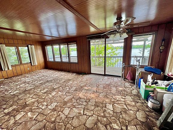 Cozy 1+ BR, 3/4 bath cabin/home at water's edge on Pike Bay, Lake Vermilion. Home's main level features walk-thru kitchen, open LR/DR with patio door leading to large deck to entertain and enjoy lake views, 3/4 bath and small bedroom. Lower level includes family rm that could be add'l bedroom with t&g paneling, storage room, utility room and walk-out lower entry. Lot includes .25 acre with southern exposure, 75' lksh, mature pine trees, fire pit area, storage shed. This property is ready for you to start making your Lake Vermilion memories.