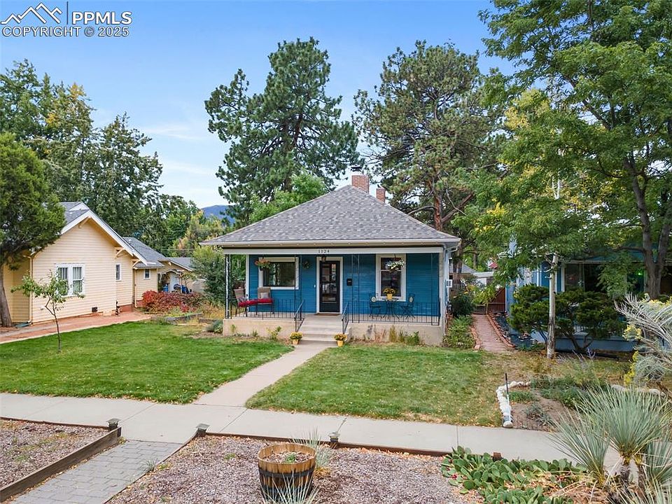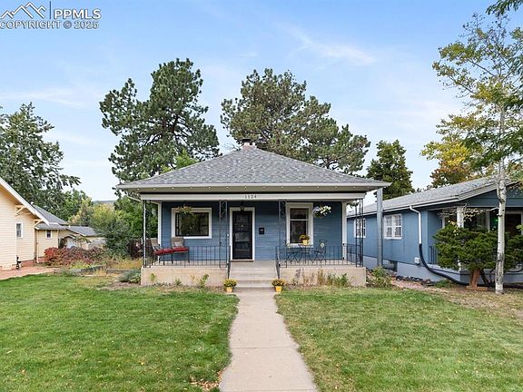 Welcome to this inviting turn-of-the-century bungalow, perfectly located near Patty Jewett Golf Course, Colorado College, and downtown shops and cafés. Original charm shines through wood floors, stained glass, charming built-ins, and a beautiful stone fireplace. Relax with coffee on the front porch or gather in the sunny kitchen nook. The home offers one HUGE primary bedroom and a second bedroom or home office space, an updated full bath, and a spacious dining room. A large backyard offers garden beds, a rare oversized 2+ car garage with 220V for your workshop or EV charger, and a versatile studio cottage with kitchenette and ¾ bath for guests or rental opportunities. The main bungalow also features a basement laundry and storage area that can be accessed by your cottage guest without having to go through the main house! Recent updates include newer furnace, water heater, and appliances.
