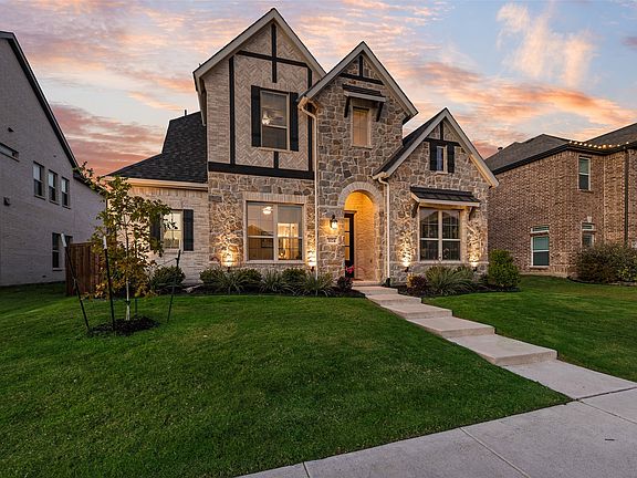 Welcome to a beautifully maintained 4 bedroom, 3 full baths Mattamy Home in the highly desirable Villages of Creekwood neighborhood of Frisco. The floor plan is thoroughly designed with generous living spaces, upgraded finishes, abundant natural light and a warm living atmosphere. As you step inside, a welcoming foyer leads to a versatile flex room with French glass doors– perfect for a home office or playroom. The utility room is fabulously designed with built-in shelves for abundant storage. The gourmet style kitchen features ample cabinetry, high quality countertops, stainless steel appliances and a large kitchen island. The kitchen flows easily into the dining and living areas making it great for family life & entertaining. Unwind in the primary suite with an en-suite bath for a spa like retreat featuring glass enclosed shower & a generous walk-in closet. Step outside to a meticulously landscaped backyard with a sparkling heated pool that heats up to hot tub levels for year-round enjoyment. Relax under the covered patio surrounded by an 8’ board on board privacy fence with electric gate. Enjoy scenic hike and bike trails with convenient access to upscale shops, restaurants and major highways, including FM423, the Dallas North Tollway and Hwy 121.