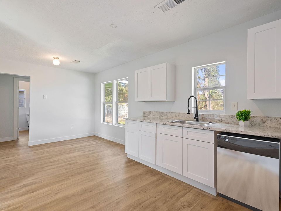 Modern vanityFresh paintStainless steel appliancesCeiling fansSpacious bedroomsOpen and bright layoutGranite countertops