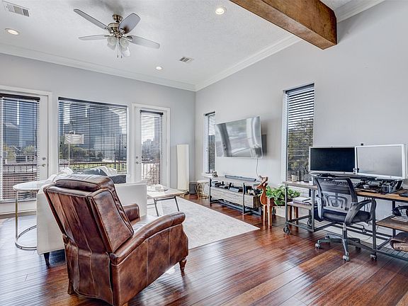 What's not to love about this home, massive windows, skyline views, roof-top living and more. 1st level, In-Law suite, spacious private bedroom, full bathroom with plenty of storage & closet space. Second level is all about the massive window's, balcony and astonishing view of downtowns skyline. Open kitchen w/ Island, SS appliances, new refrigerator, wet bar, coffee bar and built-in desk. enjoy yet another skyline view as you travel to the 3rd level which host the primary suite. With yet another private patio w/ skyline view, walk-in closet, dual sinks, separate shower & tub. The main attraction, the gorgeous skyline view from your own rooftop! Washer, Dryer, Refrigerator, Patio Furniture, mini fridge all included. Very convenient location easy access to downtown and Montrose, quick access to Highways 45, 59, and 10. Ditch your car and expensive parking fees with a five-minute stroll to Downtown. Also walking distance to Midtown and beautiful Buffalo Bayou Park. Ready for move-in