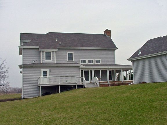 Custom Built in 2000- 2 Story Colonial Home with nostalgic wrap around front porch. Plenty of room on ~5 acres with a gorgeous view. 3 Levels of Living with first floor open floor, second story, walkout finished basement with Summer kitchen or perfect for in-law suite. Stand up attic to boot. Three car heated garage and 3 Outbuildings: 1) 60x60 w/ 12' ceiling (insulated, heated) 2) 50x60 w/ 15' ceilings finished (insulated and heated) with truss roof 24' 3) shed 17x65 unheated. Seller has gentleman's agreement with Local farmer who plants corn so property does maintain agricultural tax use. Survey is available to serious buyers upon request.
