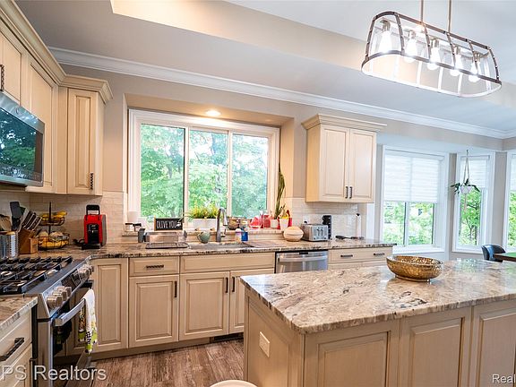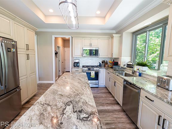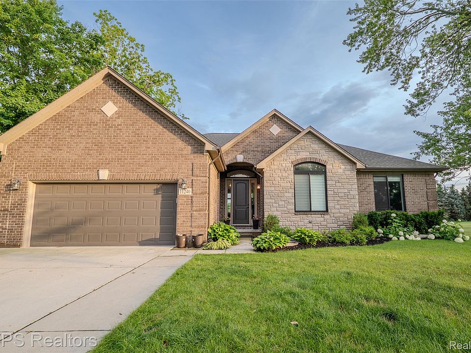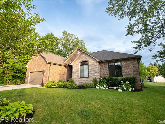 Why wait to build? This stunning 2019-built ranch home offers everything you've been looking for—and more! Located on a spacious .67-acre lot with no HOA, this 3-bedroom + office, 2.5 bath home combines thoughtful design, high-end finishes, and unbeatable convenience. The heart of the home is the dream kitchen featuring granite countertops, an oversized island, Lafata soft-close cabinetry, stainless steel appliances, and soaring ceilings with crown molding—perfect for cooking, entertaining, or gathering with loved ones. Enjoy cozy evenings by the gas fireplace in the great room, framed by panoramic windows that overlook the expansive backyard. Need a home office or playroom? French doors lead to a bright, private workspace ideal for remote work or study, or a dedicated space for the little ones to play. Retreat to your luxurious double-door master suite, complete with a spa-like bathroom featuring granite counters, a large soaking tub, a separate stand-up shower, and a spacious walk-in closet with built-in organizers. Two additional bedrooms feature plush carpet and generous closets. The partially finished basement offers tons of potential, with a full bathroom already framed—add your finishing touches! Step outside to a beautifully landscaped yard with a large aggregate patio, perfect for entertaining, relaxing, or enjoying outdoor games like soccer, football, golf, putting, or volleyball. Additional highlights include: Attached 2-car garage, ample storage and closets throughout, highly acclaimed Romeo Schools, including Indiin Hills Elementary. Prime location near apple orchards, parks, trails, golf courses, dining, and shopping. Walk or bike to Orchard Trail & Verellen's Orchard Market. Minutes from M-53, Stoney Creek Metropark, and Downtown Rochester. Just in time for the holidays—this home is a 10+ and ready for you to move in and make memories! BATVAI. Room dimensions approximate.