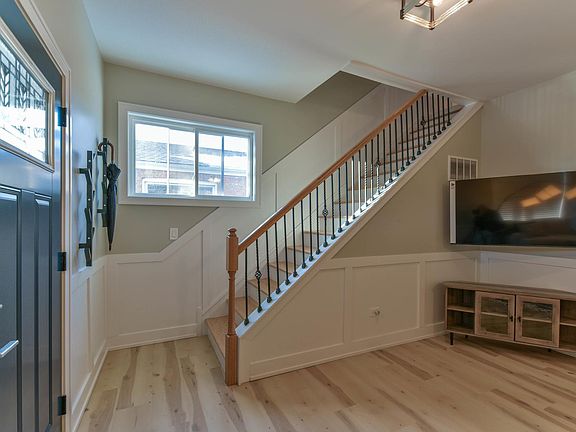 Modern high end finishesFloor to ceiling windowsSleek style cabinetsWhite quartz countertopsGenerous kitchen peninsulaWide lotLarger backyard