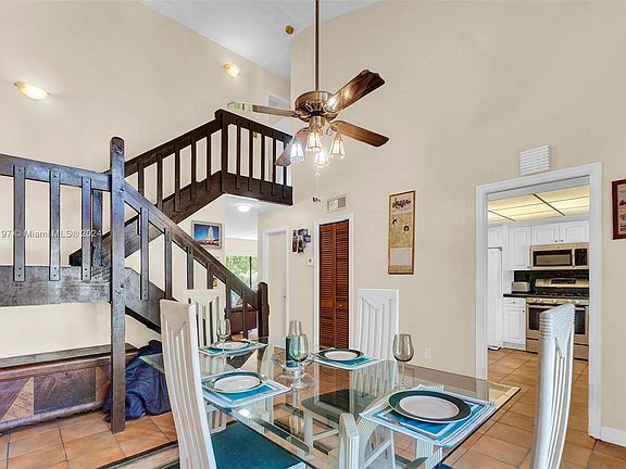 Rarely available townhouse with a full size TWO car garage. Large 21x11 family room with built-in shelving could accommodate designated office area. All bathrooms new in 2015. Remodeled kitchen. Roof replaced in 2014. Primary 15x14 bedroom plus dressing area and balcony. In-unit washer & dryer. Accordion shutters. Maintenance includes 24-hour security patrol. Enjoy resort style amenities: clubhouse with billiard room and fitness facility, scenic biking paths, two swimming pools, children’s playground and courts for tennis, basketball, racquetball and pickleball. Near William Lehman Elementary, Miami Dade College, FL Turnpike, 878 Don Shula Highway and shopping.