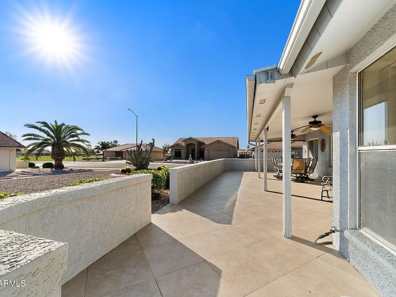 Come and enjoy golf course view from this corner lot FURNISHED 3 bedroom 2 1/2 bath home located in the amazing adult community of Sunland Springs Village. The large covered rear patio is perfect for entertaining. The tools and car in garage do not convey. Come and enjoy all the amenities that this community has to offer.