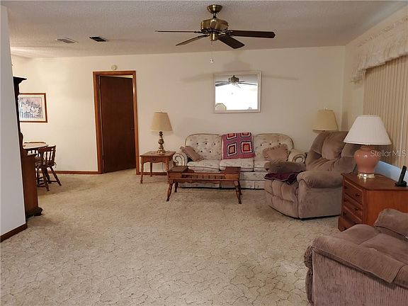 This awesome home with over 1600 square feet of living space features a split bedroom floor plan with a large living room and a separate family room, inside laundry, vinyl window enclosed porch with screens and an open covered patio. The Roof was replaced 2012, hot water heater 2020, stove and garbage disposal 2021. Palm Cay community is gated with a club house, swimming pool with a hot tub and tennis courts. Very nice quiet community.