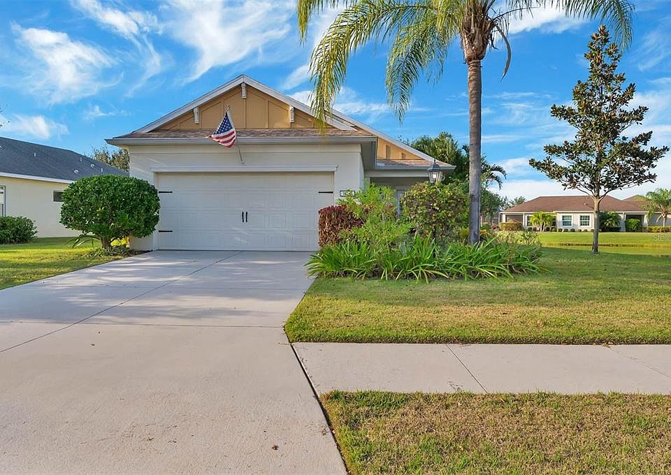 What a GEM! This meticulously maintained home is situated on a beautifully landscaped lot with wrap around lake views in the Piedmont Park Village of Central Park. The charming and lush garden entryway lets you know you're in for a treat! This 2 bed/2 bath home has an open floor plan with neutral colors throughout, beautiful flooring, eat-in kitchen and dinette. Great room has tandem windows and lake view. Master suite has walk-in closet, glass sliding doors, and bath with lots of natural light, large shower and separate water closet. Kitchen has natural gas appliances, mahogany countertops, breakfast bar with pendant lighting and pantry. From the kitchen, enter a gazebo-style screened lanai that opens to a stunning Italian Piazza-inspired patio with pavers, lovely gardens, and large dining areas overlooking a surrounding lake that allows water views from most areas of the home as well. Imagine having your morning coffee or sunset cocktail while watching the wildlife or just relaxing by the lake. And what a great patio for entertaining! Inside utility has washer and gas dryer. Gas water heater. Spacious 2-car garage. There are hurricane shutters and gas line installed for a generator. Irrigation system uses reclaimed water. Community amenities include outdoor pavilion, tennis courts, 2 dog parks, playground, splash pad, and sports fields. Central Park is a gated community in the heart of Lakewood Ranch close to A-rated schools, LECOM Medical and Dental College, hospital, medical facilities, restaurants, entertainment venues, several parks and trails, shopping areas and golf courses. Easy access to St. Petersburg, Tampa and Sarasota Airports.