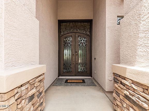 Seize the opportunity to own this corner lot property with an incredible view of the mountain area! Live in a ranch-style home with stone accents, a 3-car garage w/an extended driveway, & an RV gate. The delightful interior boasts 8ft interior doors, wood floors, soothing palette, upscale ceiling fans, & sliding doors merging the inside and outside activities! The bright great room is perfect for receiving guests! The spotless kitchen exhibits ample 42in high white cabinetry w/crown moulding, granite counters, SS appliances, a pantry, & both the center island & peninsula have a breakfast bar. Get some good night's sleep in the primary suite w/patio access, & a private bathroom w/dual sinks, designer's tile shower w/glass block window, & a walk-in closet. More storage in the garage Resort-like backyard features a covered patio, a pergola, a spa, & sparkling blue pool. Don't miss this unique find! Call now!