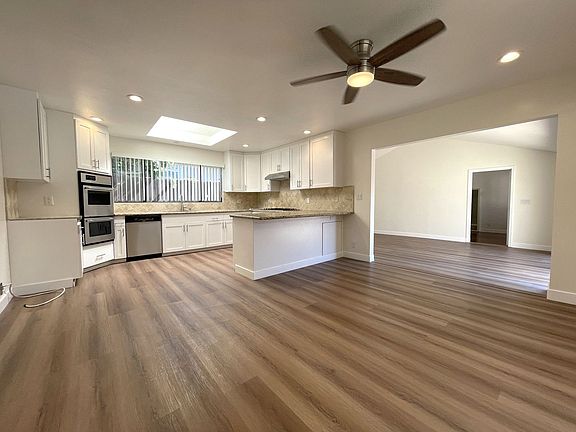 Welcome to 11244 Haskell Ave in Granada Hills! This beautifully updated 4-bedroom, 3-bath home boasts brand new flooring throughout and recent additions to the kitchen. The property includes three spacious bedrooms and a master bedroom with its own private bathroom. The large living room and den feature a cozy fireplace and patio access, providing a perfect space for relaxation and entertaining. One of the bedrooms can be easily converted into an office or weight room. The home comes equipped with a washer and dryer for your convenience. The expansive backyard includes a covered carport, and the front yard features new turf installation for minimal gardening maintenance. Enjoy the benefits of solar panels for lower electricity bills and ample parking through the back entrance. Located in a tranquil community within the bustling Los Angeles Metropolitan area, Granada Hills offers a blend of rugged natural beauty and pristine homes along tree-lined streets. With excellent employment opportunities, delightful restaurants, and a host of unique amenities, Granada Hills is rapidly becoming one of the most sought-after neighborhoods in the San Fernando Valley.