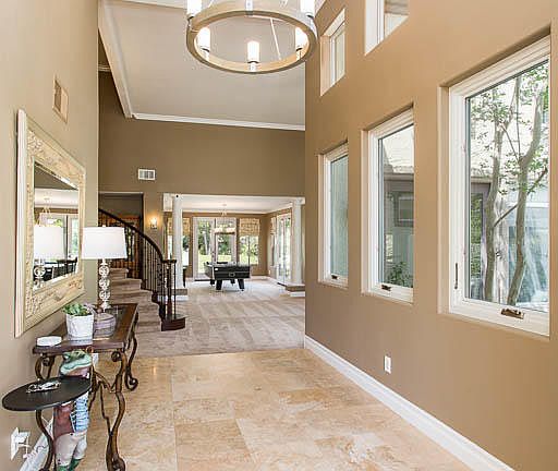 5 Bedroom, 4.5 Bath Deauville home with 4003 sq. ft. of living space. Home shows pride of ownership with beautiful decor and upgrades throughout. Features include Formal living, formal dining and bedroom and full bath downstairs. Large kitchen w/island, granite, stainless appliances and eat in area off the family room with built in entertainment center & fireplace. Magnificent wrought iron spiral staircase, large master suite with fireplace, his/her closets, master bath complete with dual sinks, large shower and oversized tub. Secondary bedrooms are ample size, one with remodeled ensuite bathroom and additional bedrooms share an upgraded Jack and Jill bath. Other features include neutral paint & carpet, travertine floors, restoration hardware lighting fixtures, shutters, new high-end Andersen windows in foyer and master bedroom, indoor laundry with sink and 3 car garage. Exterior amenities include quaint central courtyard, large private backyard with BBQ island, patio areas with pergola and large grass area with lush landscaping. Recent upgrades are11.56 kW Solar (Owned) System and 11 Gal/min high efficiency Tankless Water Heater.
