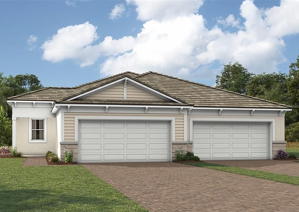 Under Construction. The Maya paired villa boasts 1,574 square feet of well-designed living space, where the open-concept kitchen serves as the focal point, seamlessly connecting to the dining area and Great Room. Adjacent to the kitchen, the laundry room offers maximum convenience, ensuring efficient daily routines. Outdoor living is encouraged with the covered lanai, providing a perfect setting for enjoying Florida's year-round wonderful weather, whether for dining, gathering, or unwinding. A flex room off the foyer adds versatility to the layout, offering options for a home office, playroom, or hobby space. Tucked away for privacy, the owner's suite at the back of the home features a tranquil bath and a generously-sized walk-in closet, completing the blend of comfort and functionality in this inviting space. Great incentives available for a limited time only. Incentives, pricing, dimensions and features can change at any time without notice or obligation. Photos, renderings and plans are for illustrative purposes only, and should never be relied upon and may vary from the actual home. The photos are from a furnished model home and not the home offered for sale. Room Feature: Linen Closet In Bath (Primary Bedroom).
