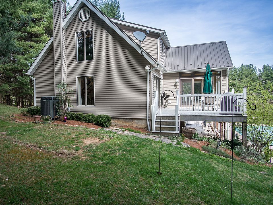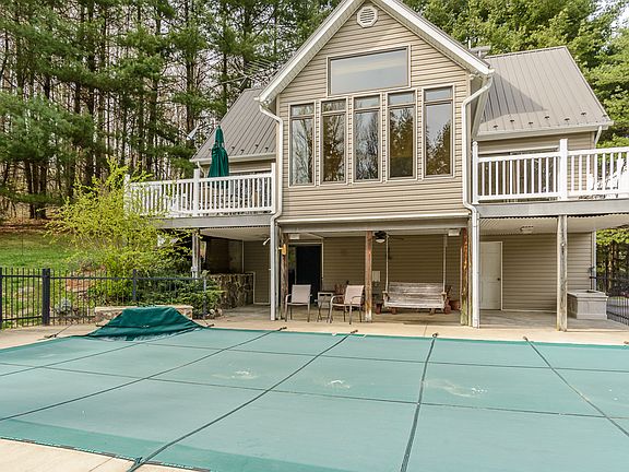 Keep in Mind...this place is for Nature Lovers! A mix of Open Pasture, Woods, Privacy,& Fun in the Sun with your own Salt Water Pool making this home ideal for those who have an affection for horses,cows,chickens or any critters you want to bring, plus plentiful outdoor entertaining spaces. Enjoy two Open Decks and a spacious covered Patio that all connect to the Pool, Calming Views,& Tranquil Living that this home embraces. A welcoming covered Porch introduces a two-story Foyer, which leads you into the Open Concept Living & Dining Rooms. From the Dining Room, a continuous wall of sliding doors focuses your attention on the outdoors where you'll entertain & dine on the Trex Deck. The Kitchen is in the center of the home open to the sunny Breakfast Area & a gorgeous Sunroom with its maple hardwoods, cathedral ceiling & tall windows w/ transoms. Master BR, Full Bath & Laundry on the Main Level. Upstairs are two Bedroom Suites w/ storage eaves. Rustic Den in Lower Level!