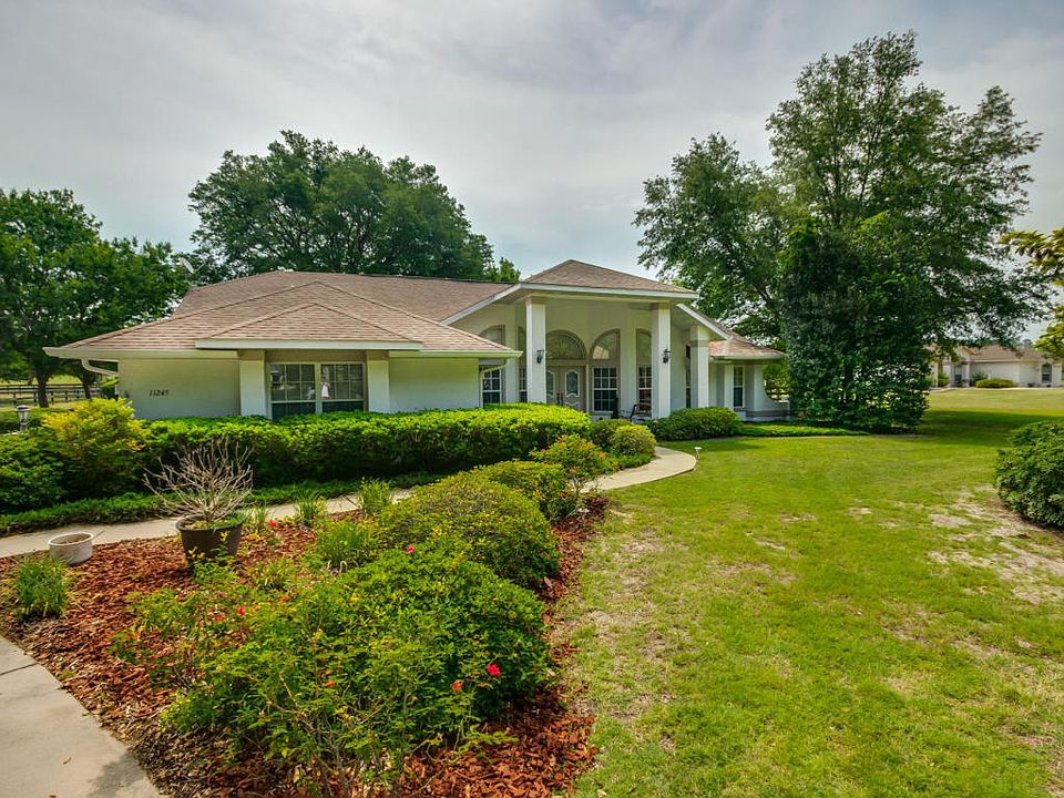 Country living at its best in the middle of Florida's Horse Country! Beautiful three bedroom, two bath home with office on over an acre in the gated Summit Downs community. Enjoy walking trails surrounding the community, shopping or dinner at one of Ocala's award winning restaurants. The home hosts vaulted ceilings, skylights and a bright open floor plan perfect for entertaining. Chef's kitchen with stainless appliances and expansive counters open to the family room with sliding doors that lead to the lanai and screened in pool. Retire in the spacious master retreat that features a spa bath with soaking tub, walk in shower and double vanity. Large guest rooms and office complete Summit Downs Estate.