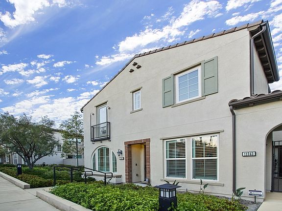 Porter Ranch Debut! Make every day feel like a vacation in this fabulous Resort styled Townhome, built in 2015! Boasting an amazing floor-plan with 1,590-SQFT of living space, 3 bedrooms, 3 bathrooms and an attached 2-car garage with new flooring and new built-in cabinets. Upon entry find an open floor-plan with tile flooring, baseboard and doorway moldings, large windows detailed with newly added plantation shutters, as well as soaring ceilings equipped with recessed lighting. The modern styled kitchen features a center Island with granite counter-tops, dark wooden cabinets, stainless steel appliances and sliding doors that lead the way to your private entertainer's patio. As you get to the second floor you will find plush carpeting in the bedrooms, en-suite bathrooms and a large laundry room. The Master bedroom has double the closet space, a hotel style bathroom with dual vanities, a soaking tub, plus a shower. This Townhome is situated in the best part of the building where you'll be close to the pool and playground. The complex is right next to the brand new Whole Foods, just minutes from restaurants and shopping.