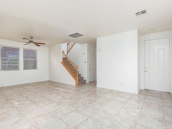 Large 3 bedroom, 2.5 bathroom story home in Summerlin. Ground floor has oversized ceramic tile throughout. The Master Suite with a walk-in closet and ceiling fan are upstairs. A large loft/game room (big enough for a full-size pool table) is located upstairs. Fenced back yard and covered patio. Blocks to Costco, Lowe's, Bed Bath & Beyond, Borders, Best Buy, Red Rock Casino, etc. Easy freeway access!