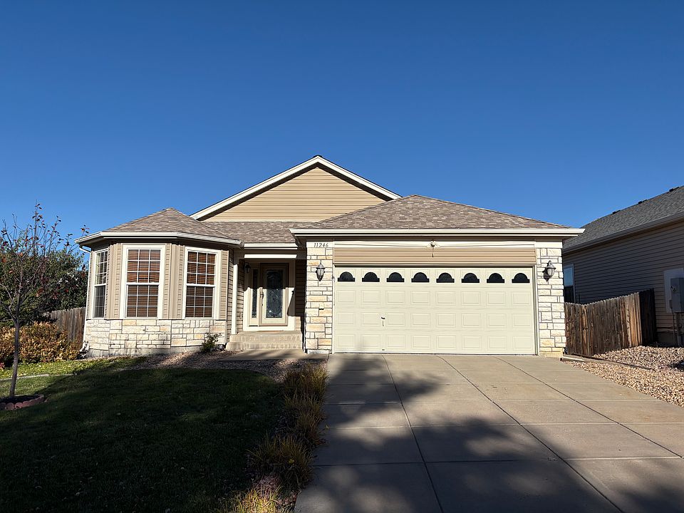 Ranch style home ready to be moved in. Fresh paint, hardwood floors throughout and kitchen has tile, 2 car garage washer/dryer included. Nice neighborhood close to schools, clubhouse with a pool. Back ups to open area for afternoon walks. Nice back yard and unfinished basement can be used for storage.