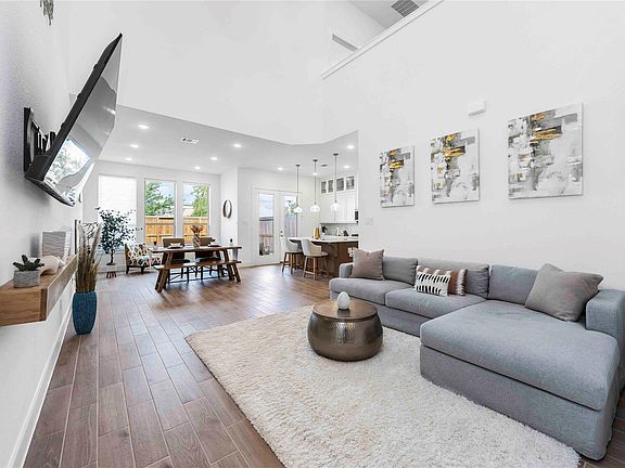 Step into this bright and beautifully designed home, filled with natural light streaming through large windows throughout. The upgraded kitchen showcases elegant quartz countertops, sleek stainless steel appliances, and opens seamlessly to the main living area—perfect for everyday living and entertaining. Stylish wood-look tile flows throughout all downstairs common areas, while durable tile enhances the bathrooms and utility room. Upstairs, you’ll find a spacious loft overlooking the family room and a serene primary suite featuring a spa-like bath with a freestanding soaking tub and separate shower. Plus, yard maintenance is included through the HOA, making this the ideal low-maintenance home. Enjoy resident amenities including access to the Lakehouse, with everything from a fitness center to pools and a clubhouse for private events.Also, enjoy miles of hike and bike trails, parks, and playgrounds. And don’t forget the waterpark with a lazy river, sandy beach, and twisty waterslides.