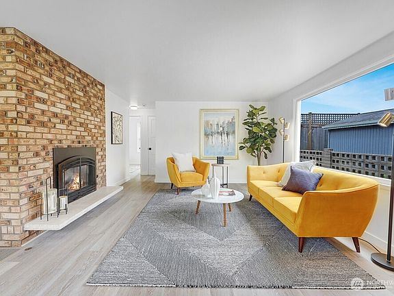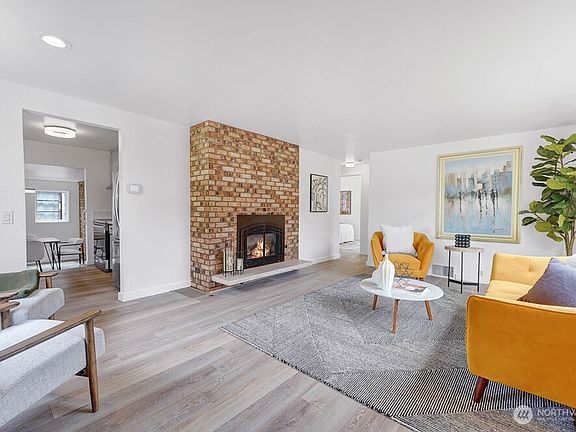 Wonderful mid-century home in a sought after neighborhood! Beautiful brick fireplace with gas insert. Large dining room open to the updated kitchen will accommodate many quests! New quartz countertops are installed everywhere! New stainless steel refrigerator, stove/oven, dishwasher, washer and dryer! New waterproof laminate plank flooring throughout the main floor. The primary bedroom w/ half bath is spacious & bright! New hot water heater. New roof, interior & exterior paint! New sewer & sump pump! New patio off very large backyard! Alley access to detached one car garage w/ space for workshop. Potential for DADU. Great location near Carkeek Park, schools, popular shopping & dining spots. Convenient access to highways, Metro & light rail!