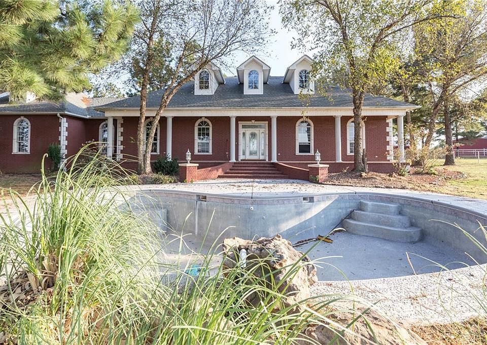 Horse Training and Breeding Operation. 20 acres +/- (will need new survey), Lab & Chutes, 13 double Stalls, 20 runs, Main Barn has wash rack, tack & feed room, bunk house, 16 stalls, third barn has 64 stalls. 75' covered round pen, 30x60 hay & shavings barn, dog kennels. House is approx. 4800sqft (including heated/cooled garage) 4 beds 2 baths, luther stem inground pool. *Additional 12 acres +/- and Red Bard w/living quarters and 6-12 stalls, arena and free style walker available to purchase*