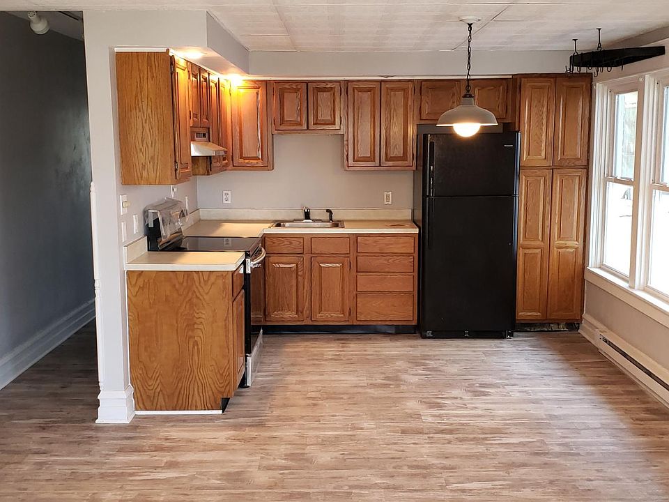 Spacious one bedroom apartment on the second floor of a twin house. Also has a large walk-up closet on 3rd floor for additional storage space. Close to shopping, laundromat, and bus routes. Background and credit checks are performed. Applicants must have a credit score of 650 or higher. Section 8 not accepted. No pets allowed. Owner pays water, sewer, and trash. Tenant pays electric. One month's security and first month's rent due at lease signing.