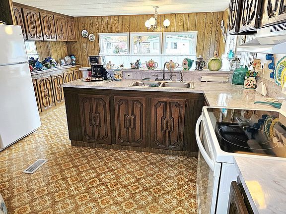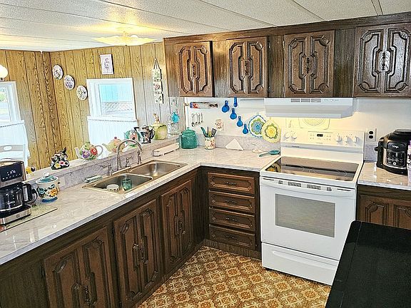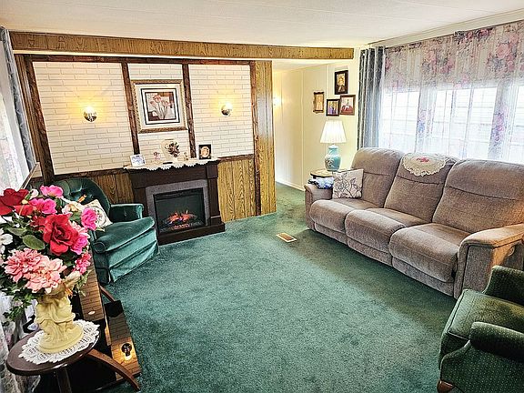 The home is located on leased land with a monthly space rent of $1,015, which includes access to park amenities. Buyers must obtain park approval prior to purchase. Closing can be handled through a local title company.
