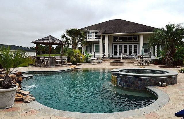 Beautiful executive estate with almost 10 acres of country living. As you pull up, you are greeted by an elegant gated entryway, tree-lined paved driveway completed with a circular drive surrounding a fountain in front of the home. The professional landscaping boasts a tropical feel with palm trees galore. The estate has a private backyard oasis with a top of the line, low-maintenance, beach entry, heated, custom saline pool and hot-tub with waterfall. The pool is surrounded by a large decorative concrete patio, firepit, poolside tiki bar, built-in gas grilling station, full back deck, and outdoor stereo. As an added bonus, this home has a 2-car attached garage and separate 10-car detached garage/workshop which includes a fully finished heated and cooled gym and office. Inside the home,