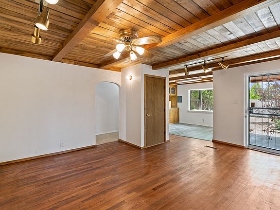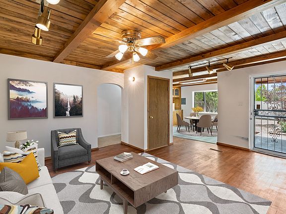 This fantastic move in ready home resides on a large well-maintained .854 acre lot and has recently received extensive updates that make this home stand out from the rest! Upon entry you will see the redone, original hardwood flooring in the large living and dining room areas, new stylish lighting fixtures inside and out, brand new carpeting in each of the bedrooms, the entire home has been freshly painted, the kitchen and baths have been tastefully updated and the home has new stucco as well. A full list of all of the updates is available upon request. The detached and oversized 2- car garage also features a private workshop/studio space! There are 3 bedrooms, 2 baths, 2,404 +/- heated sqft and a bonus room with great natural light that would make a great sunroom or private home office space. City water, private well for irrigation, natural gas and city sewer utilities. Approximately 30 minutes from Los Alamos and Santa Fe. Come and see this great home today!