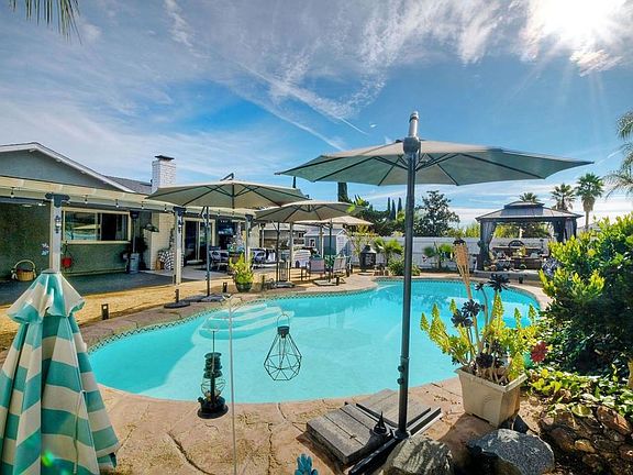 ***WOW ****Gorgeous 4 BEDROOM POOL home! Laminate floors, updated fixtures! Living room greets you & flows seamlessly with eating area & kitchen! Kitchen boasts new stainless steel appliances, subway tile back splash, & ample cabinet space! Family room adorns a cozy fireplace & offers outside & Pool access! Beautiful newer covered patio. All bedrooms feature ceiling fans . Master bedroom showcases a beautiful Master bathroom & private access to the backyard which features sparking pool! Solar panels & much more, come see!