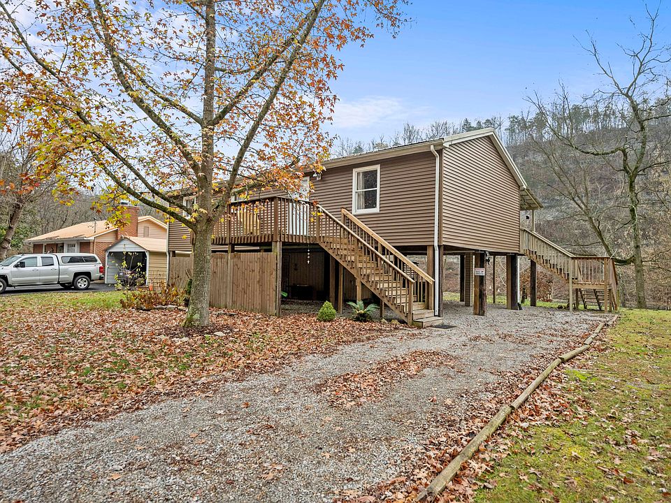 Beautiful waterfront vacation home, AirBnB, retreat center or residence on the Kentucky River with a view of High Bridge in Wilmore. This 2 BR, 1.5 BA elevated home has a covered back deck that overlooks the river with stunning views. Home features a great room with lovely kitchen, dining area, primary bedroom with closets and access to the back deck, a spare bedroom, a full bath and half bath/laundry room. Launch a canoe or kayak or fish from your own dock. Workshop area on the ground level. An amazing opportunity to be part of this peaceful river community. Come see this property today before it's gone!