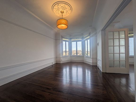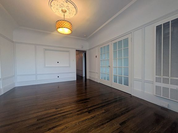 - Classic details including French doors, dark wood flooring, decorative ceiling medallions, Bay windows, and architectural craftsmanship that speaks to San Francisco's historic charm.